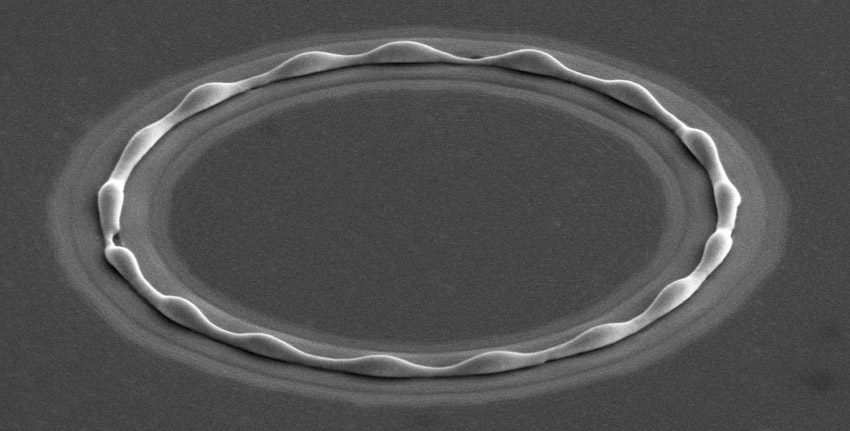 aplicaciones tecnológicas. Un mecanismo para producirlos consiste en emplear pulsos láser que funden filamentos metálicos rectos o curvos de escalas nanométricas. Las inestabilidades de la línea de contacto conducen a la ruptura de los filamentos líquidos resultantes y a la formación de gotas. Fenómenos similares se observan en la filamentación de aceites a escalas macroscópicas (submilimétricas) depositados sobre superficies que mojan parcialmente. Se muestran experimentos que ponen en evidencia aspectos aún no bien explicados de estos procesos. Métodos de diagnóstico óptico permiten caracterizar completamente la estructura de las gotas en los experimentos submilimétricos y poner en evidencia efectos de histéresis. Para analizar estos experimentos se necesitan modelos teóricos que eliminen la paradoja de la línea de contacto móvil. Se discuten dos tratamientos alternativos. Se muestra que el modelo basado sobre una condición de deslizamiento permite resolver con cierta sencillez configuraciones complejas, como los filamentos anulares, para los cuales se carecía de una teoría adecuada.