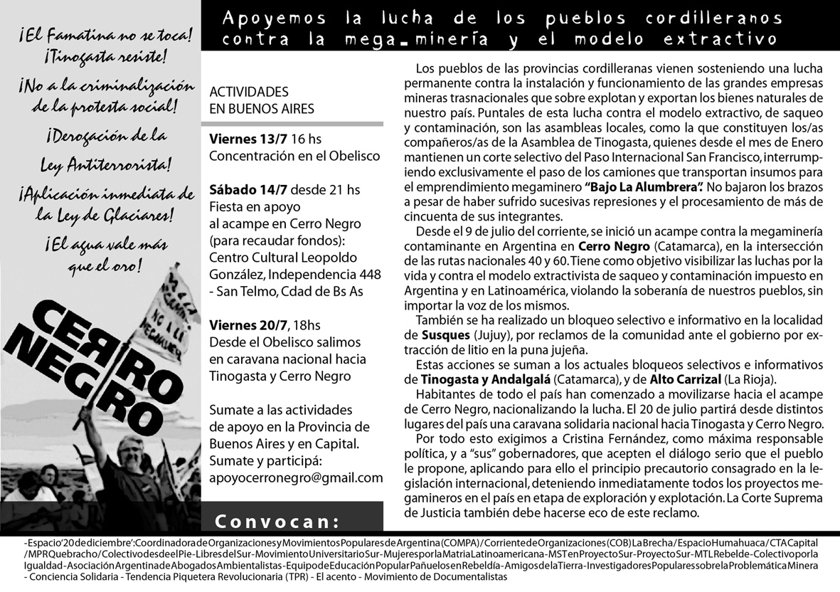 [Todos] Apoyemos la lucha de los pueblos cordilleranos contra la mega-minería y el modelo extractivo