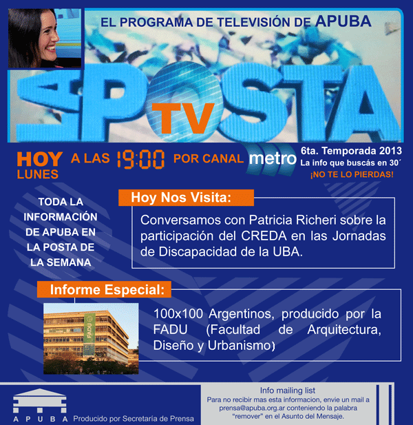 [Todos] [Apuba_fcen] La Posta Tv Programa Lunes 10 de junio