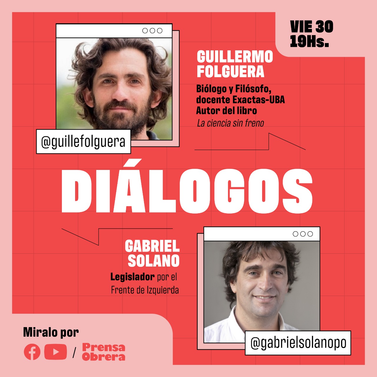 Este viernes 30 a las 19h invitamos a un nuevo "Diálogos" entre Gabriel
