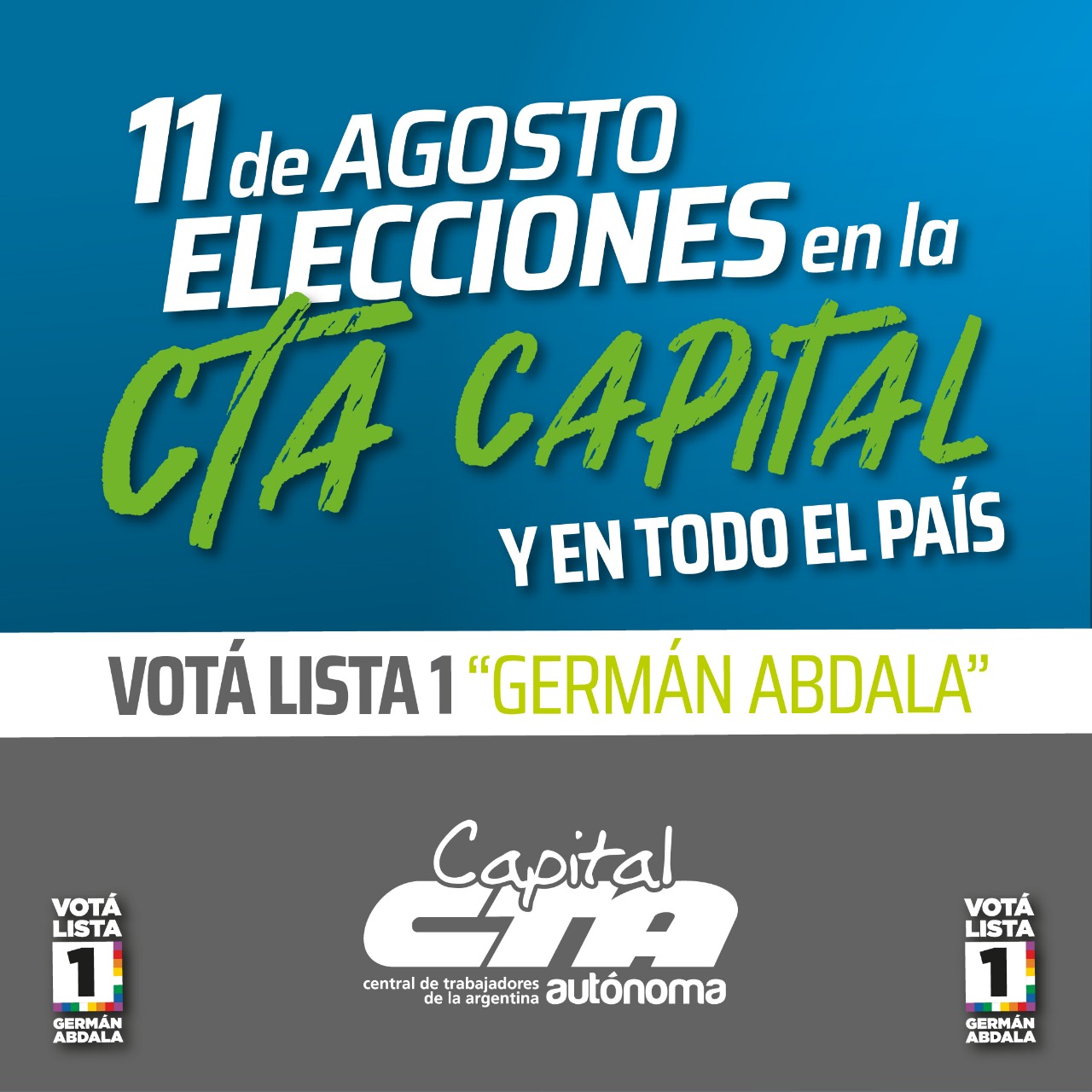 Este jueves 11/8 son las elecciones de CTA Autónoma, pueden votar