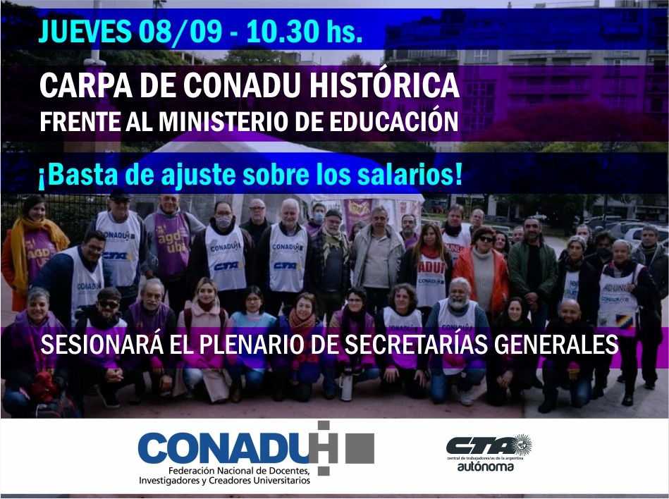 [Todos] 📣JUEVES 8/09 ::CARPA DE CONADU HISTÓRICA FRENTE AL MINISTERIO DE EDUCACIÓN DE LA NACIÓN::