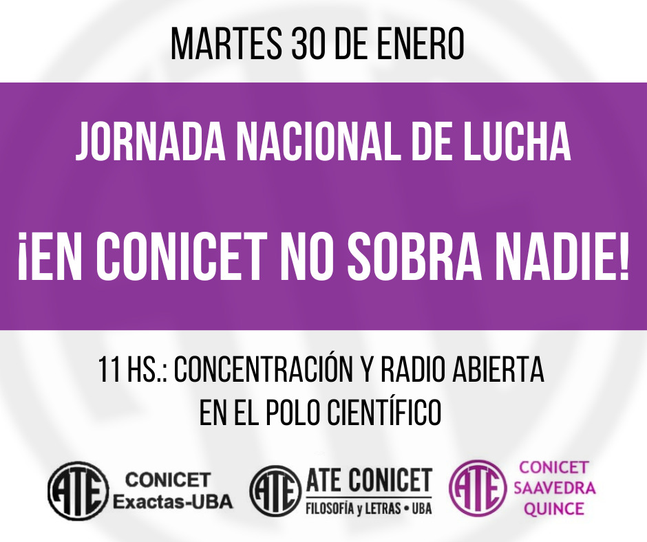 [Todos] Martes 30/1, 11 hs - ¡TODXS AL POLO CIENTÍFICO! - Jornada Nacional de Lucha de ATE CONICET