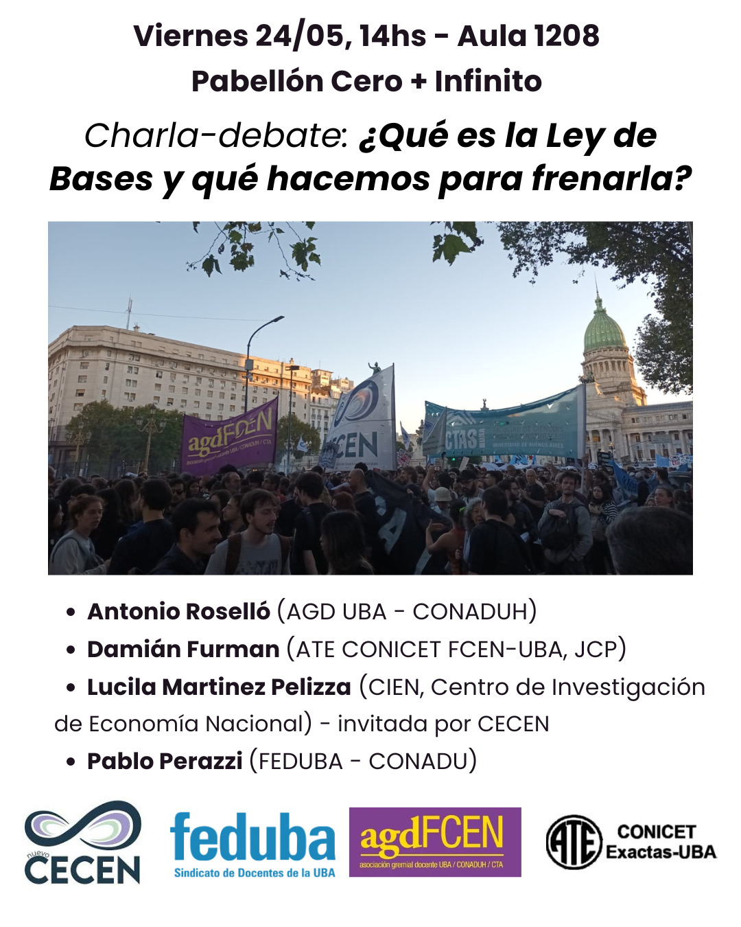 [Todos] Viernes 24/5: Charla-debate sobre la Ley Bases - 14 hs aula 1208 en Pab. 0+inf