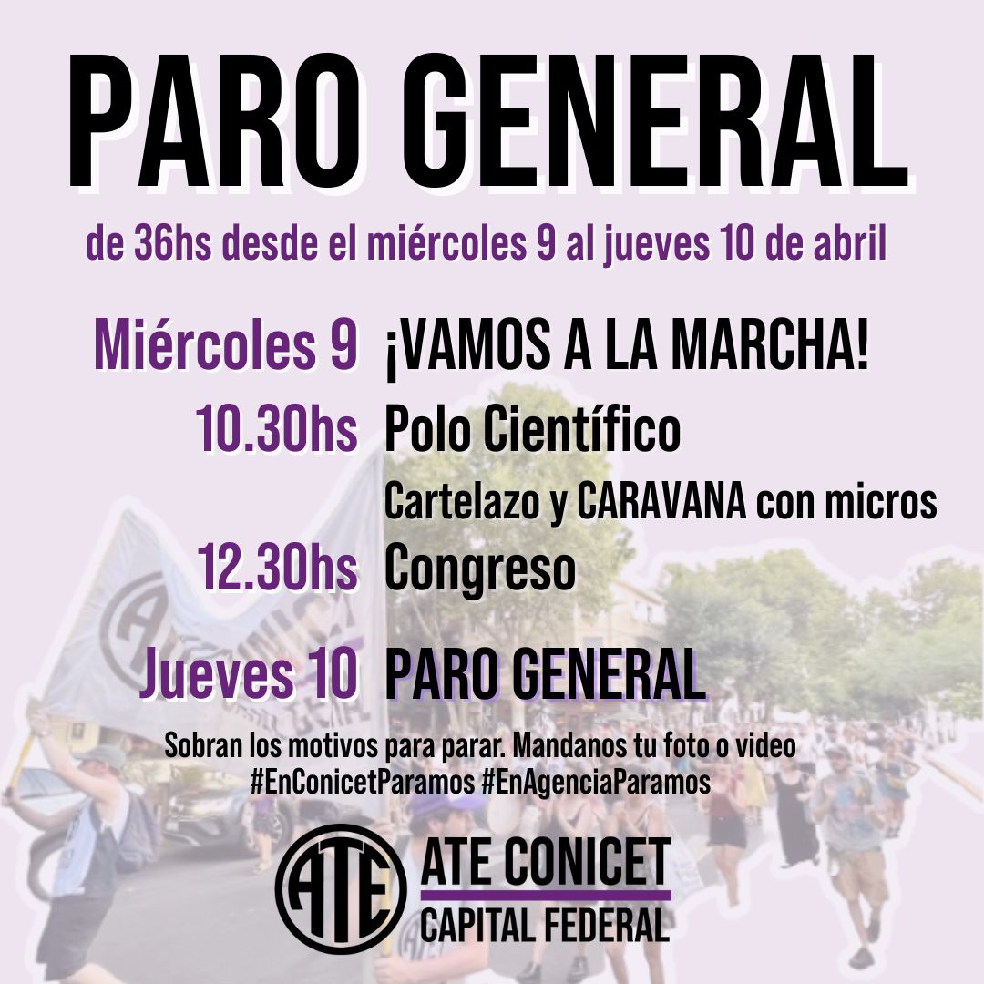 [Todos] Paro general de 36hs desde -miércoles 9 al jueves 10 de abril
